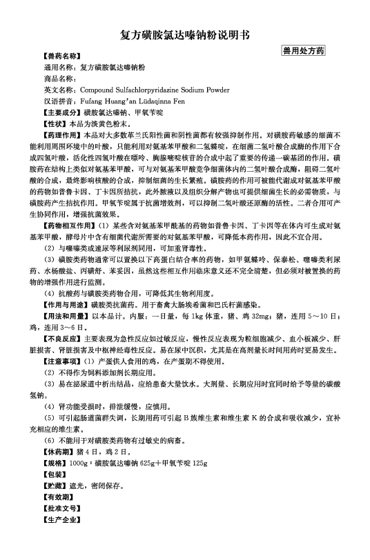 復方磺胺氯達嗪鈉粉