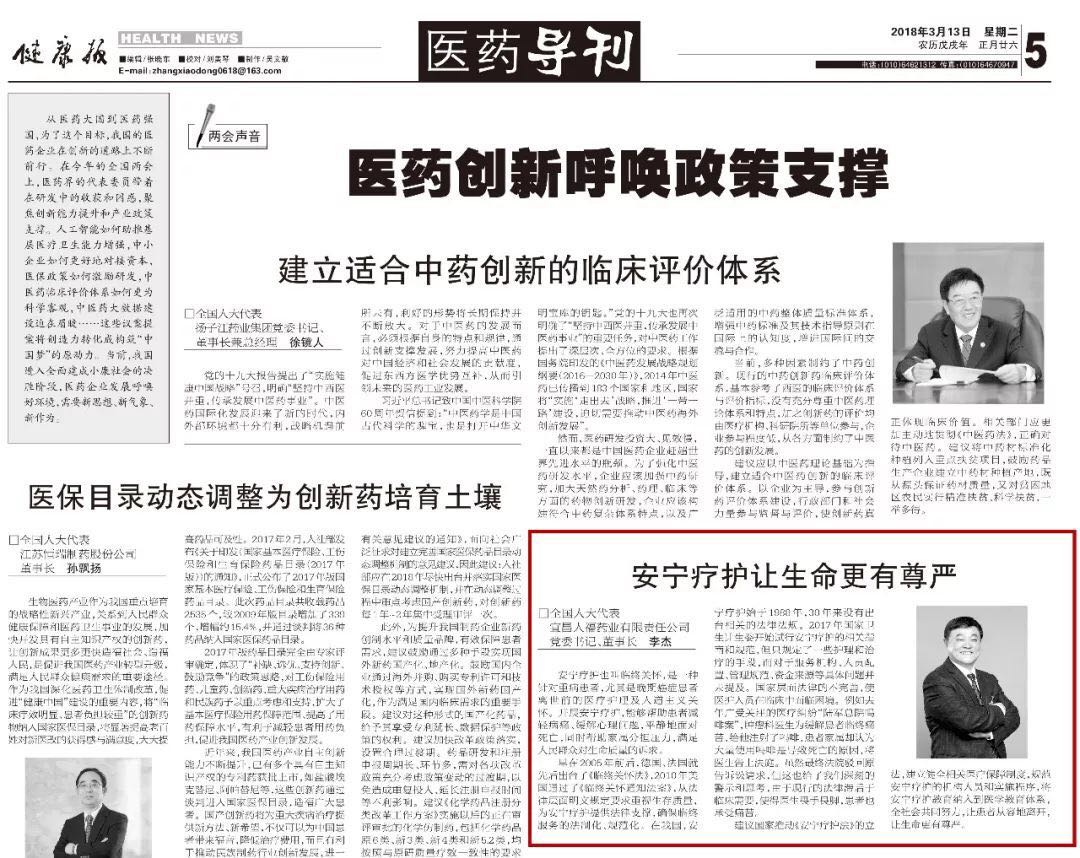 ? ? ? ?如何更好地實(shí)施臨終關(guān)懷,幫助病人減少臨終前的痛苦?全國(guó)人大代表,人福醫(yī)藥集團(tuán)股份公司總裁,宜昌人福藥業(yè)有限責(zé)任公司黨委書記、董事長(zhǎng)李杰建議推動(dòng)《安寧療護(hù)法》立法,進(jìn)一步規(guī)范安寧療護(hù)的標(biāo)準(zhǔn)和管理制度,幫助病人有質(zhì)量有尊嚴(yán)地度過生命的最后時(shí)光。該建議受到媒體積極關(guān)注,并先后在中國(guó)新聞網(wǎng)、《健康報(bào)》登出。