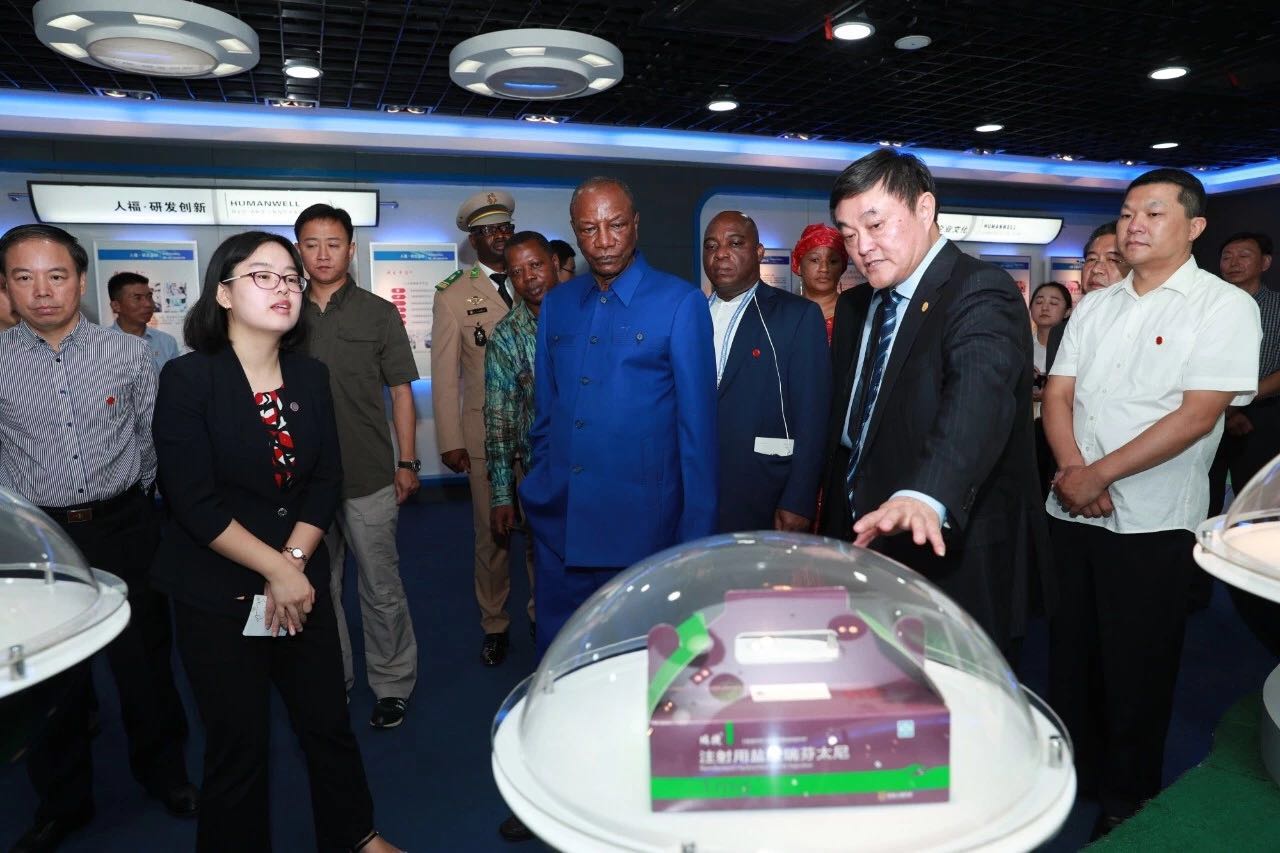 9月5日下午15時,幾內亞共和國總統阿爾法·孔戴率代表團抵達宜昌人福藥業公司,開始為期兩天的訪鄂行程。這是中非合作論壇北京峰會后,首個訪鄂的非洲代表團,孔戴總統也是繼博茨瓦納總統后第二位到訪人福的非洲國家元首。