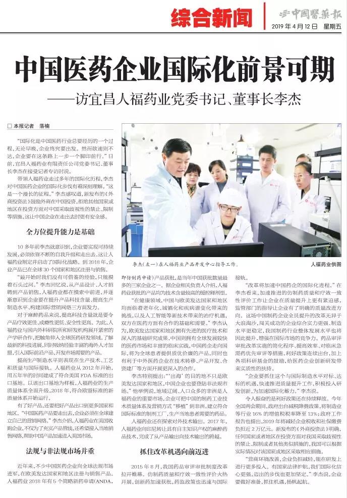 ?“國(guó)際化是中國(guó)醫(yī)藥行業(yè)總要經(jīng)歷的一個(gè)過(guò)程,無(wú)論早晚,企業(yè)終究要出發(fā)。然而欲速則不達(dá),企業(yè)要在這條路上一步一個(gè)腳印前行?!比涨埃烁at(yī)藥集團(tuán)總裁、宜昌人福藥業(yè)有限責(zé)任公司黨委書(shū)記、董事長(zhǎng)李杰在接受記者專訪時(shí)說(shuō)。