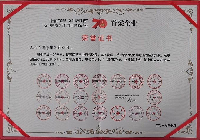 10月8日至10日,“2019中國(guó)醫(yī)藥企業(yè)家科學(xué)家投資家大會(huì)暨新中國(guó)成立70周年醫(yī)藥產(chǎn)業(yè)發(fā)展成就展”在北京舉行。大會(huì)同期舉行了“中國(guó)醫(yī)藥上市公司競(jìng)爭(zhēng)力頒獎(jiǎng)典禮”“中國(guó)醫(yī)藥創(chuàng)新企業(yè)100強(qiáng)發(fā)布”“壯麗70年,奮斗新時(shí)代”新中國(guó)醫(yī)藥70年紀(jì)念晚會(huì)、海內(nèi)外醫(yī)藥創(chuàng)新公司投融資路演等多項(xiàng)活動(dòng)。人福醫(yī)藥集團(tuán)黨委副書(shū)記、副總裁、董事會(huì)秘書(shū)李前倫應(yīng)邀代表集團(tuán)參會(huì)。會(huì)上,人福醫(yī)藥集團(tuán)獲“壯麗70年 奮斗新時(shí)代”新中國(guó)成立70周年醫(yī)藥產(chǎn)業(yè)脊梁企業(yè)、“中國(guó)醫(yī)藥創(chuàng)新企業(yè)100強(qiáng)(第19位)”兩項(xiàng)殊榮。
