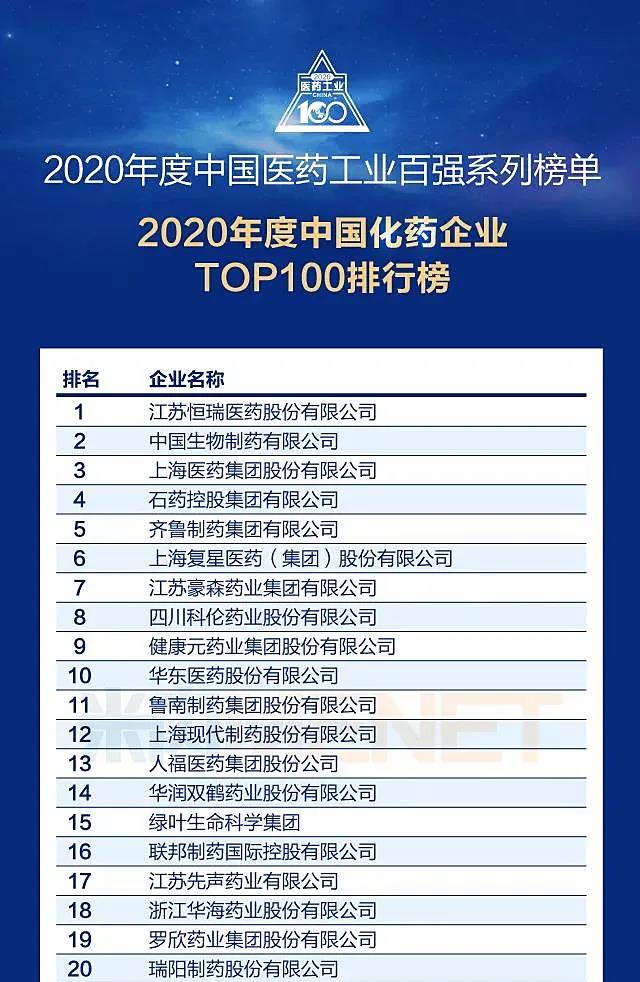 7月21日,在米內網2021年米思會現場,2020年度中國醫藥工業百強系列榜單正式發布。百強系列榜單分為“中國化藥企業TOP100排行榜”“中國中藥企業TOP100排行榜”等5大子榜,人福醫藥集團位列中國化藥企業TOP100排行榜第13位。