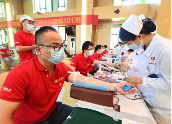 6月29日,武漢市衛生健康委、武漢血液中心與人福醫藥集團聯合開展“黨旗飄揚 熱血人福”黨建共建活動,以實際行動慶祝中國共產黨成立101周年。活動當天,近200多名黨員和職工“熱血集結”、奉獻愛心,最終121人成功獻血32260毫升。