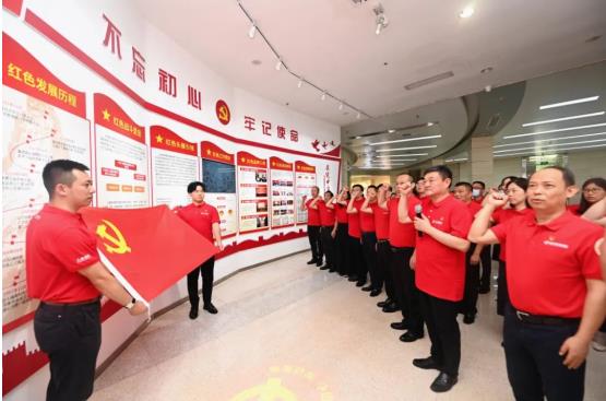 活動現場,市衛健委、武漢血液中心、人福醫藥集團等領導重溫入黨誓詞,人福醫藥集團新發展黨員入黨宣誓。