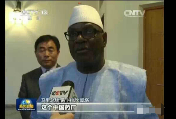 ??????? 馬里總統易卜拉欣.凱塔出席了投產儀式并接受采訪,他說,“這個中國藥廠(人福醫藥)結束了馬里不能生產藥品的歷史。”